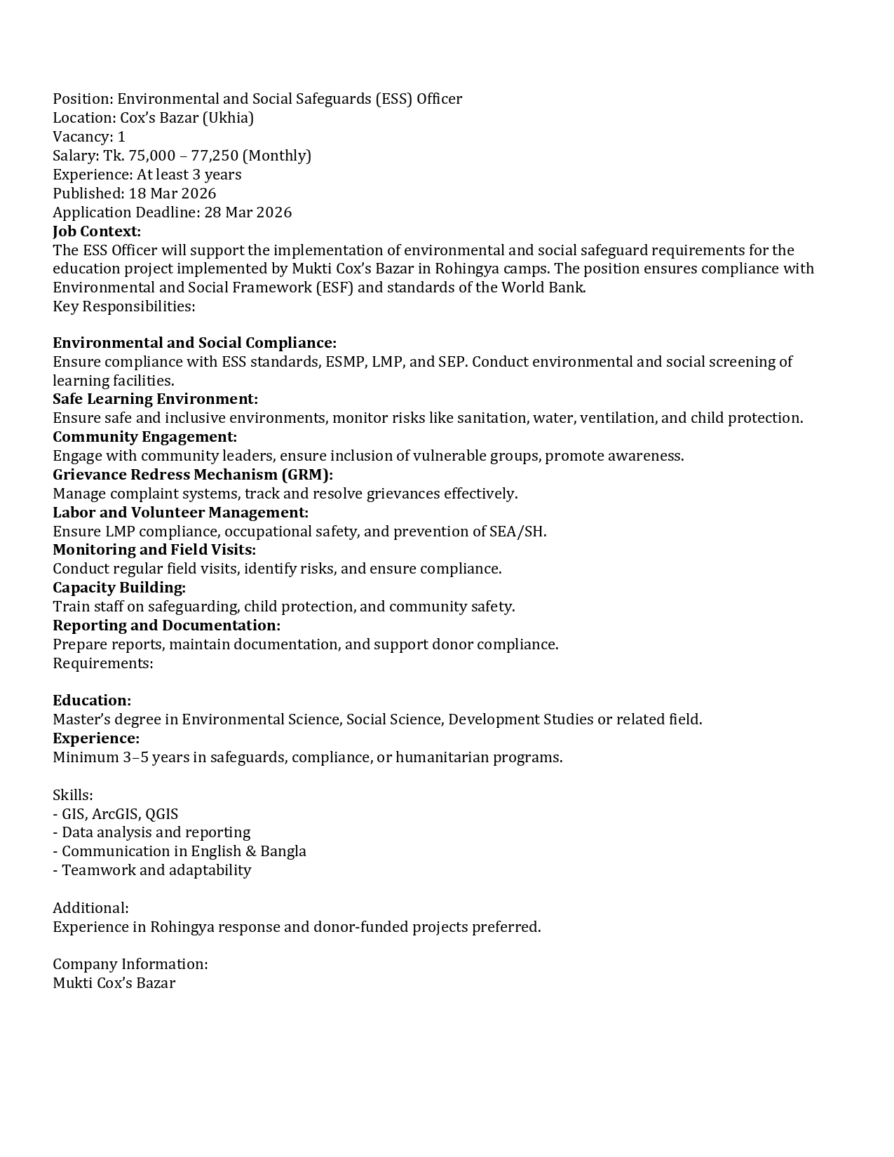 Circular for Environmental and Social Safeguards (ESS) Officer
