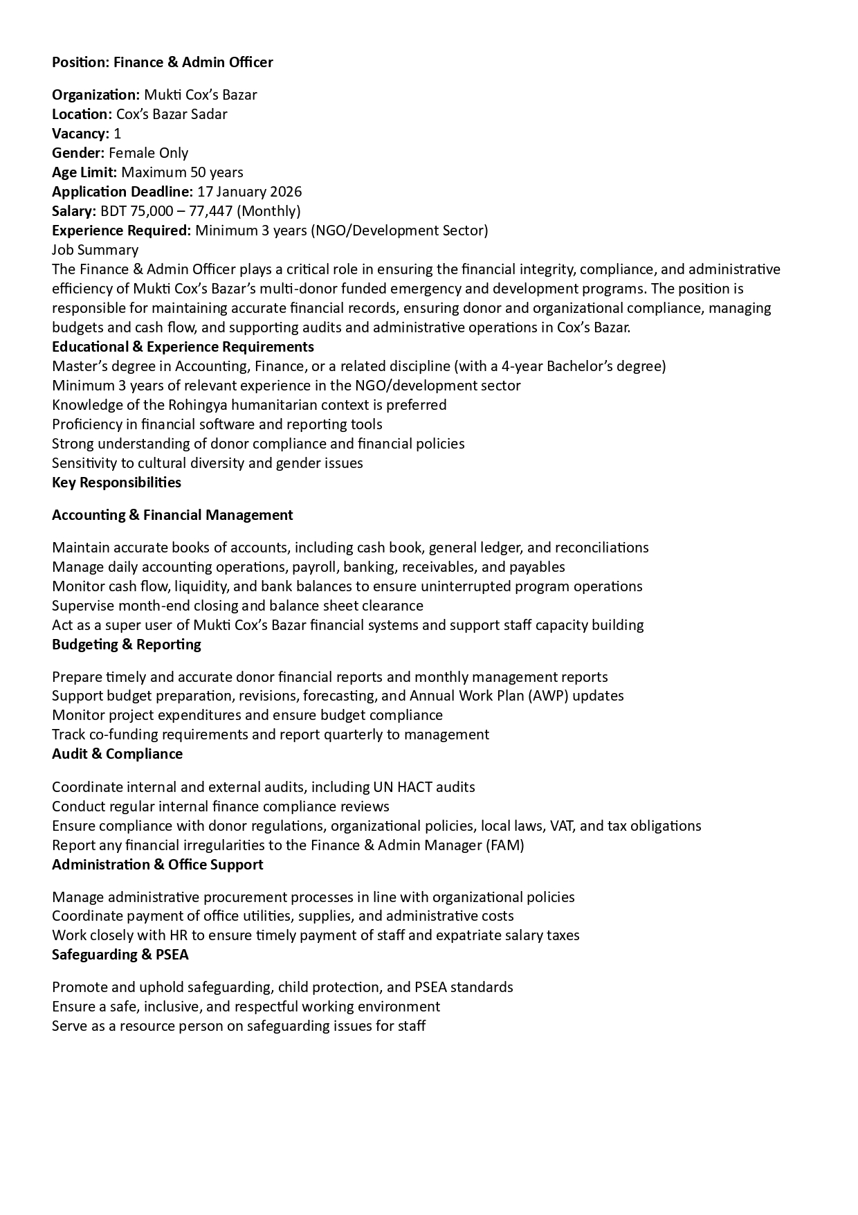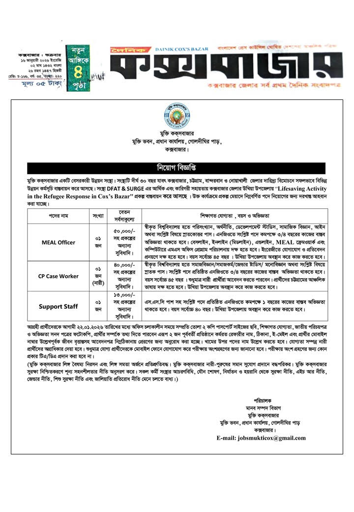 Circular for MEAL Officer, Case Worker, Support Staff